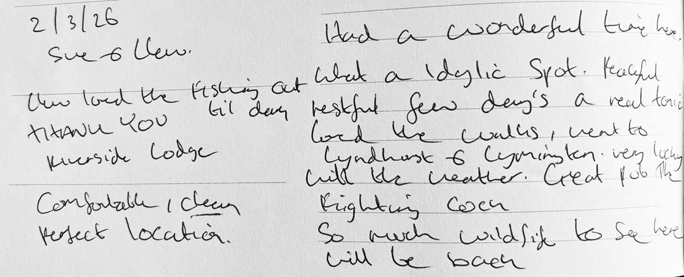 Included with the Lodge tariff is one excellent swim on 35 yards of the Hampshire Avon which is about 25 yards